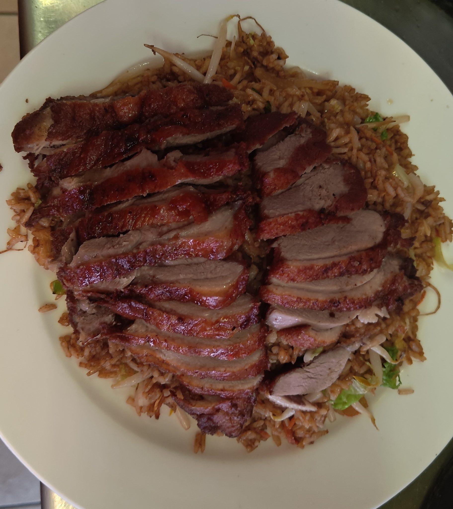 Nr.19a-b Knusprige Ente (mit gebr. Reis oder Nudeln)...3,A,F 10,50 €
